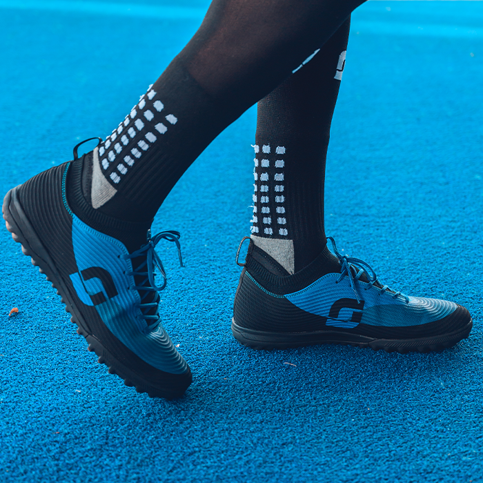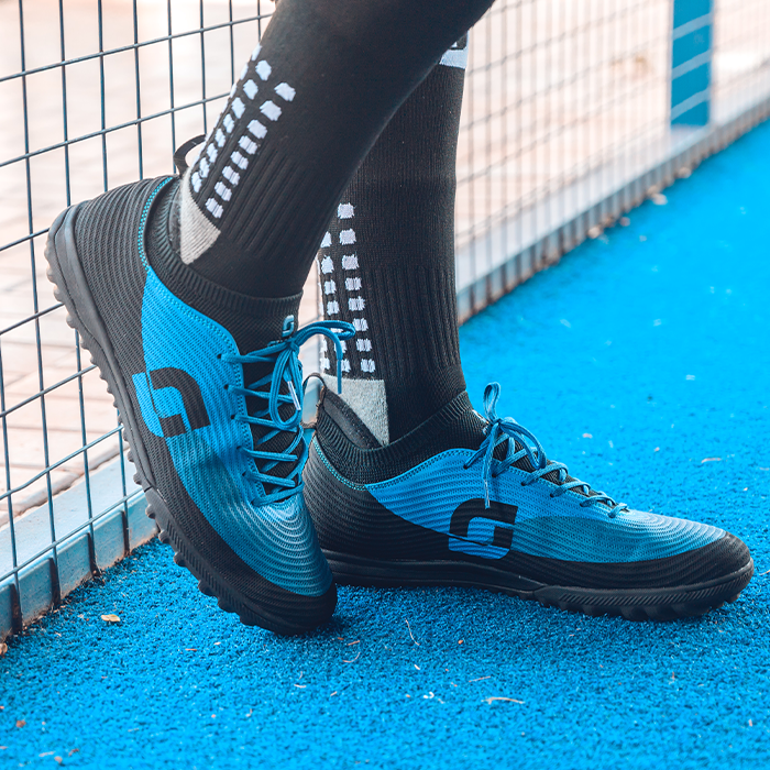 Diseñado para el máximo rendimiento en superficies sintéticas, el calzado ONEPRO TURF combina estilo, comodidad y funcionalidad. Su capellada en tejido sintético fusiona tonos de azul y negro con textura acanalada, brindando un ajuste firme y una estética moderna. El cuello tipo calcetín ofrece un calce ceñido al tobillo, favoreciendo la estabilidad en cada movimiento.